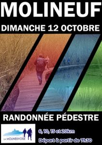 Départ : Mairie de Molineuf : 20km : de 7h30 à 9h0 – 15m : de 7h30 à 9h30 – 10km : 7h30 à 10h0 – 6km : 7h30 à 10h30