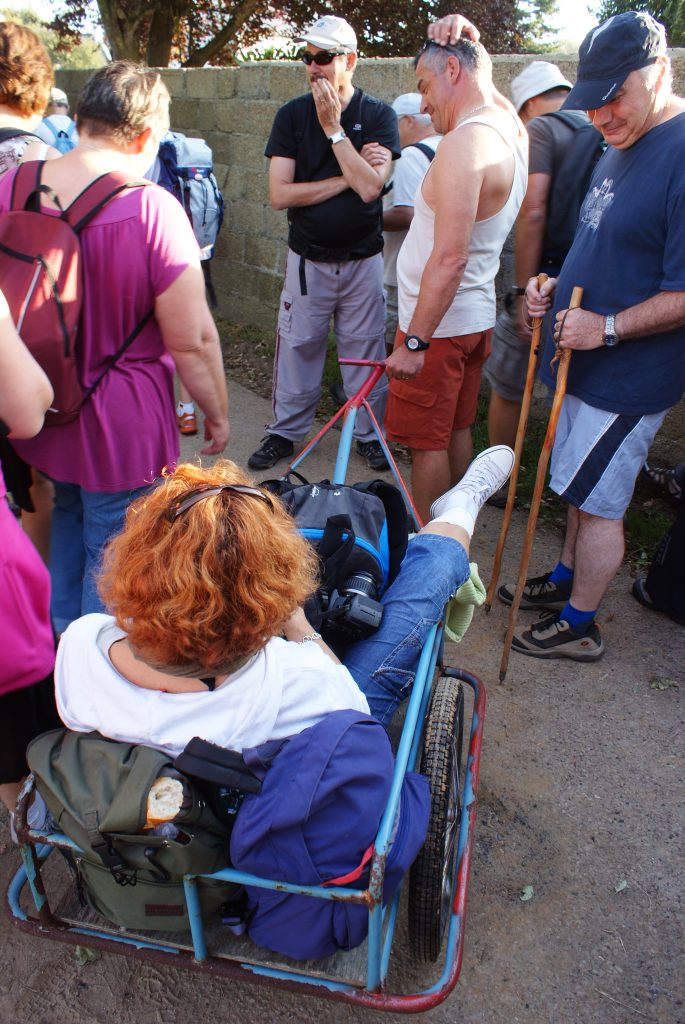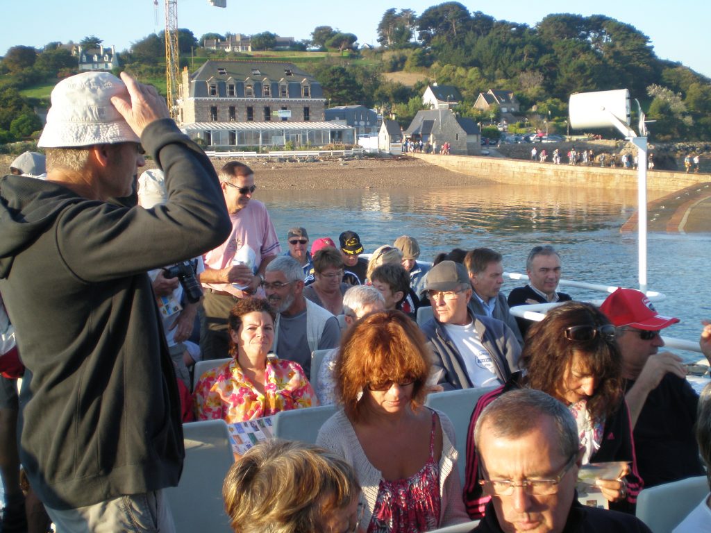 AnneMarie qu s'est cassée la chville lors de la radonnée de la veille découvre Bréhat en véhicule.