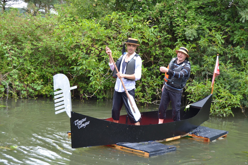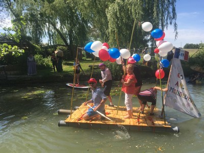 La fête des Radeaux de la Cisse s’est déroulée le dimanche 2 juillet 2017 sous un ciel chargé de nuages menaçants, alors que les fortes pluies des jours précédents nous faisaient craindre un fiasco pour cette 3ème édition. Aussi, avons nous été agréablement surpris de trouver un public nombreux tout au long des bords de Cisse venu encourager les 10 radeaux inscrits pour l’occasion. Même s’ils étaient moins nombreux que les années précédentes, les radeaux étaient plein d’originalité et de fantaisie. Ainsi, la chorale Chorésia présentait une superbe gondole vénitienne conduite en chanson par Richard et Olivier, le Tangue tangue (titre d’une des chansons interprétée par Chorésia). Comme lors de la précédente édition, notre ami Loic et son fils Enzo avaient conçu un radeau pittoresque plein d’humour nommé Le bel Hammok (Hammock, mot anglais qui signifie Hamac). Tandis que Le Bailléterie-Plage rayonnaient au dessus des flots, l’équipage entièrement féminin du Rhum à Gogol’s s’en donnait à cœur joie en tentant un abordage sur Les Cisse à la Plage. inscrit de la dernière heure, le radeau des Pêcheurs de Cisse terminait son voyage dans l’hilarité de ses passagers tandis que les employés du Syndicat Mixte de la Vallée de la Cisse embarqués sur le So Cisse sortaient la grosse artillerie en arrosant à grands seaux d’eau les concurrents et même le public amusé. Le bateau Ivre de la Molineuvoise tentait de sauver les apparences entourés des paddle de Chambon-sur-Cisse tandis que les matelots de l’ASLO Vélo embarqués sur le vélo terminaient l’épreuve en marchant (dans l’eau !).