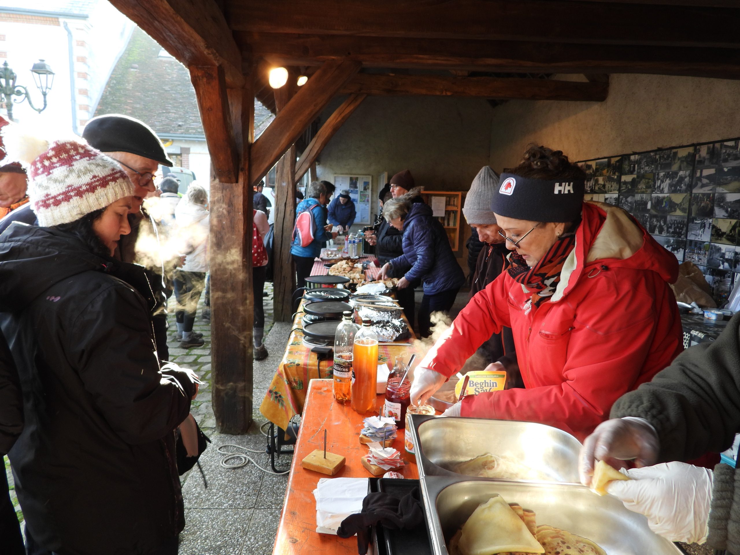 Pour La Molineuvoise, la randonnée de février revêt une importance toute particulière car, depuis des années, elle contribue très largement à son fonctionnement grâce à une très forte fréquentation. Alors que nous croyions cette randonnée bien installée au calendrier, nous avons dû nous confronter cette année avec la randonnée du RIT de Cellettes dont la date habituelle avait été modifiée. Cela nous a incités à compléter notre pause ravitallement en proposant aux randonneurs la dégustation de crêpes en espérant que cela suffise à limiter la perte de fréquentation. Nos bénévoles féminines, Babeth en tête, se sont donc mises à l’œuvre pour confectionner des centaines de crêpes. Et, sans doute grâce à elles, peut-être aussi au beau temps qui enfin s’était installé, cette randonnée a attiré 360 participants. C’est certes 100 à 150 de moins que les années précédentes, mais bien plus que nous le redoutions.